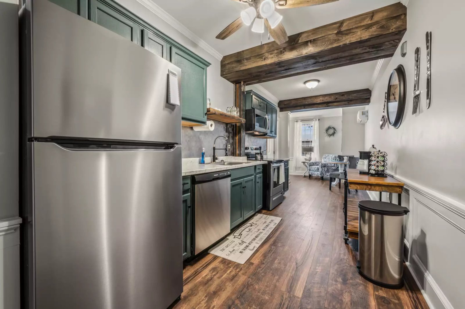 A fully furnished 1-bedroom apartment perched on the second floor in the heart of town, just steps away from train tracks. This charming unit offers a cozy living space, a well-appointed kitchen, and a tranquil bedroom. Its central location provides easy access to nearby amenities, restaurants, and public transportation. Please note that occasional train sounds may be heard due to its proximity to the tracks..