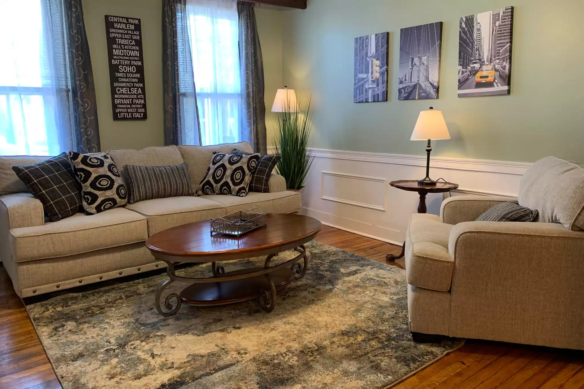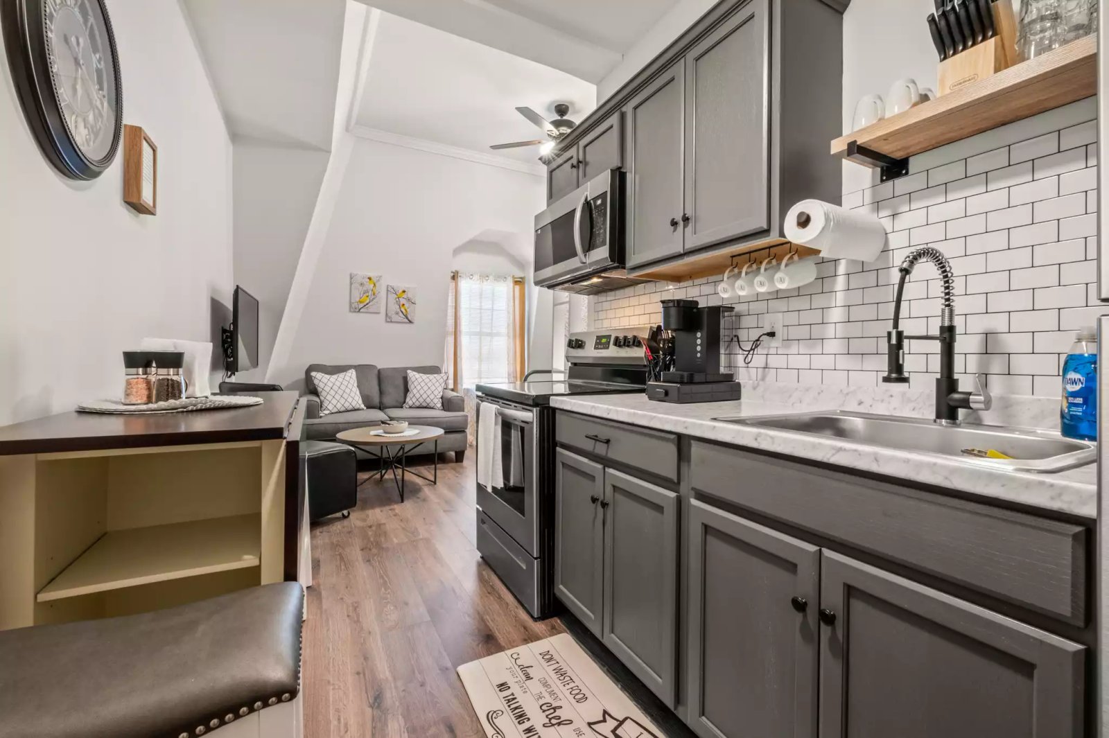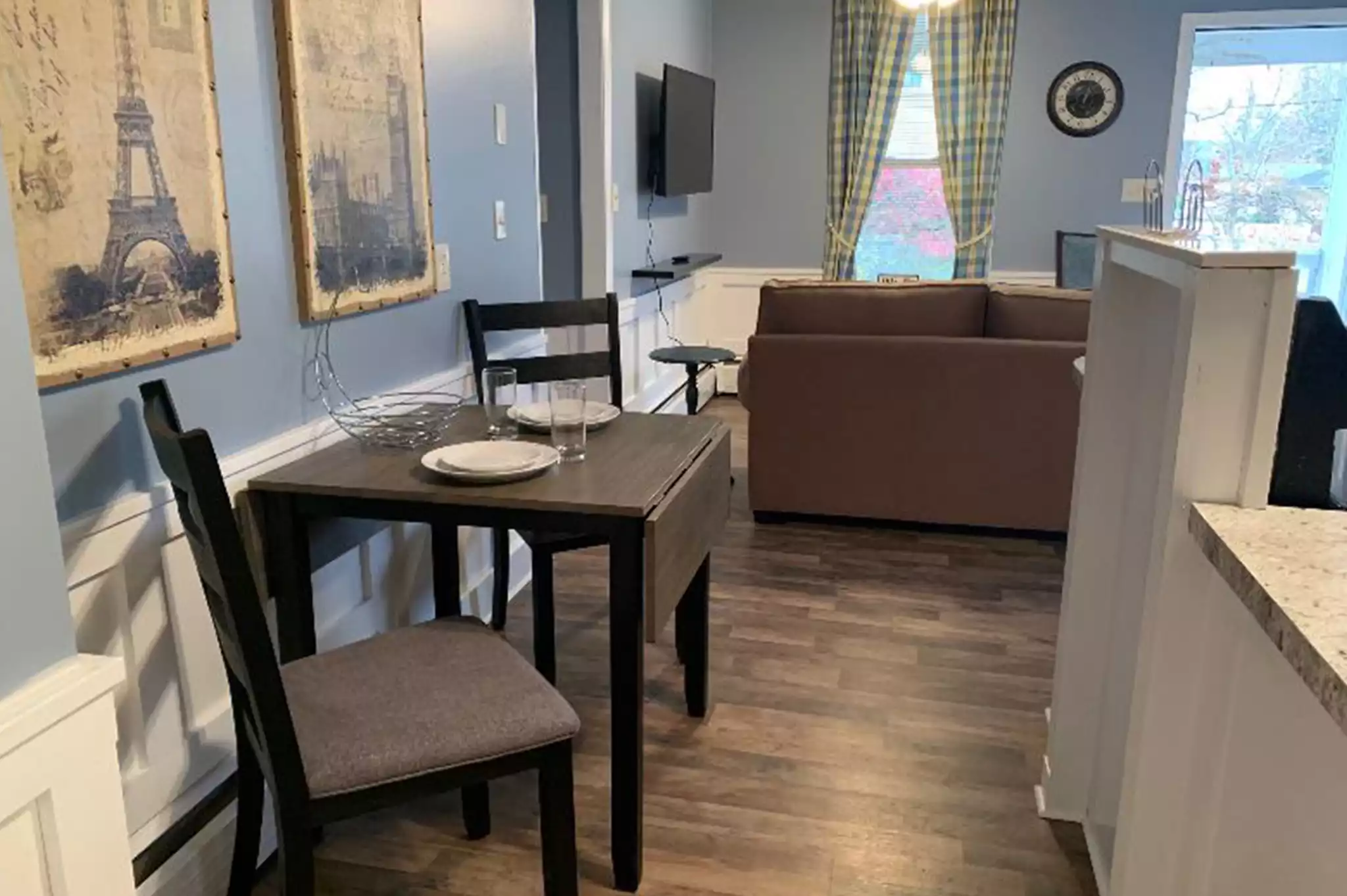 A fully furnished 1-bedroom apartment situated on the 2nd floor in the vibrant center of town, adjacent to train tracks. This tastefully decorated unit offers a cozy living space, a well-appointed kitchen, and a comfortable bedroom. Its central location provides convenient access to local amenities, dining options, and public transportation. Please note that due to its proximity to the train tracks, occasional train noise may be audible.