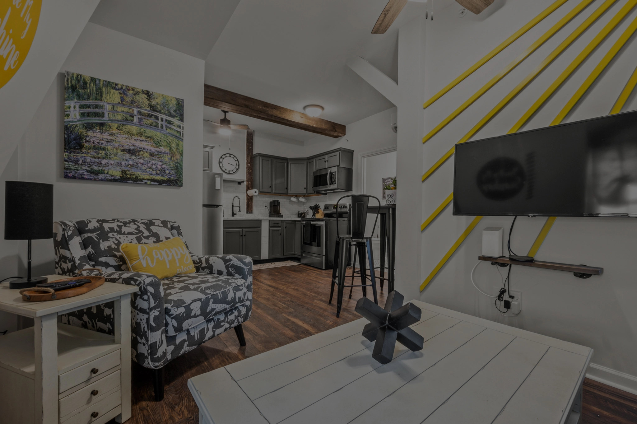 A fully furnished 1-bedroom apartment perched on the second floor in the heart of town, just steps away from train tracks. This charming unit offers a cozy living space, a well-appointed kitchen, and a tranquil bedroom. Its central location provides easy access to nearby amenities, restaurants, and public transportation. Please note that occasional train sounds may be heard due to its proximity to the tracks..