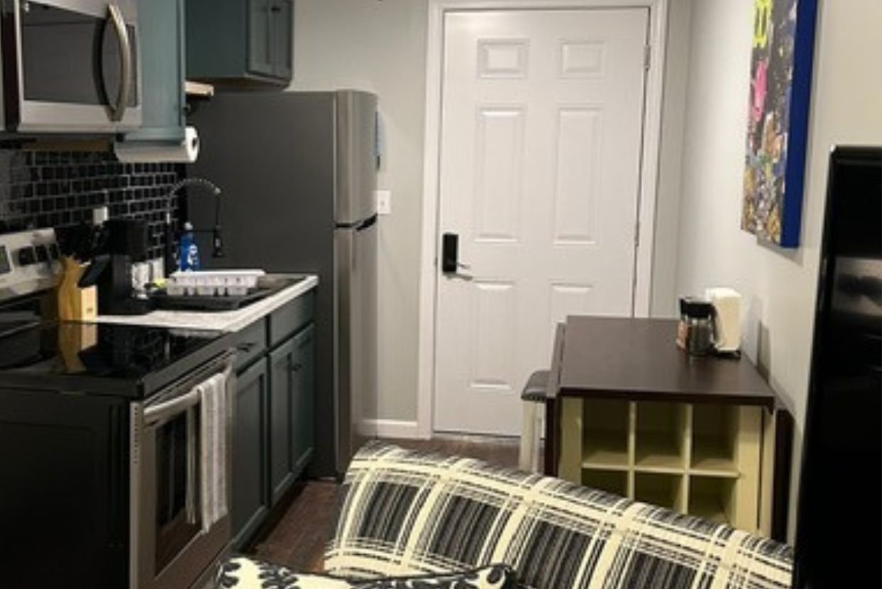 DescriptionA fully furnished studio apartment nestled in the bustling center of town, conveniently located near train tracks. This compact yet stylish unit boasts modern amenities, a full size kitchen, and a comfortable living/sleeping area.