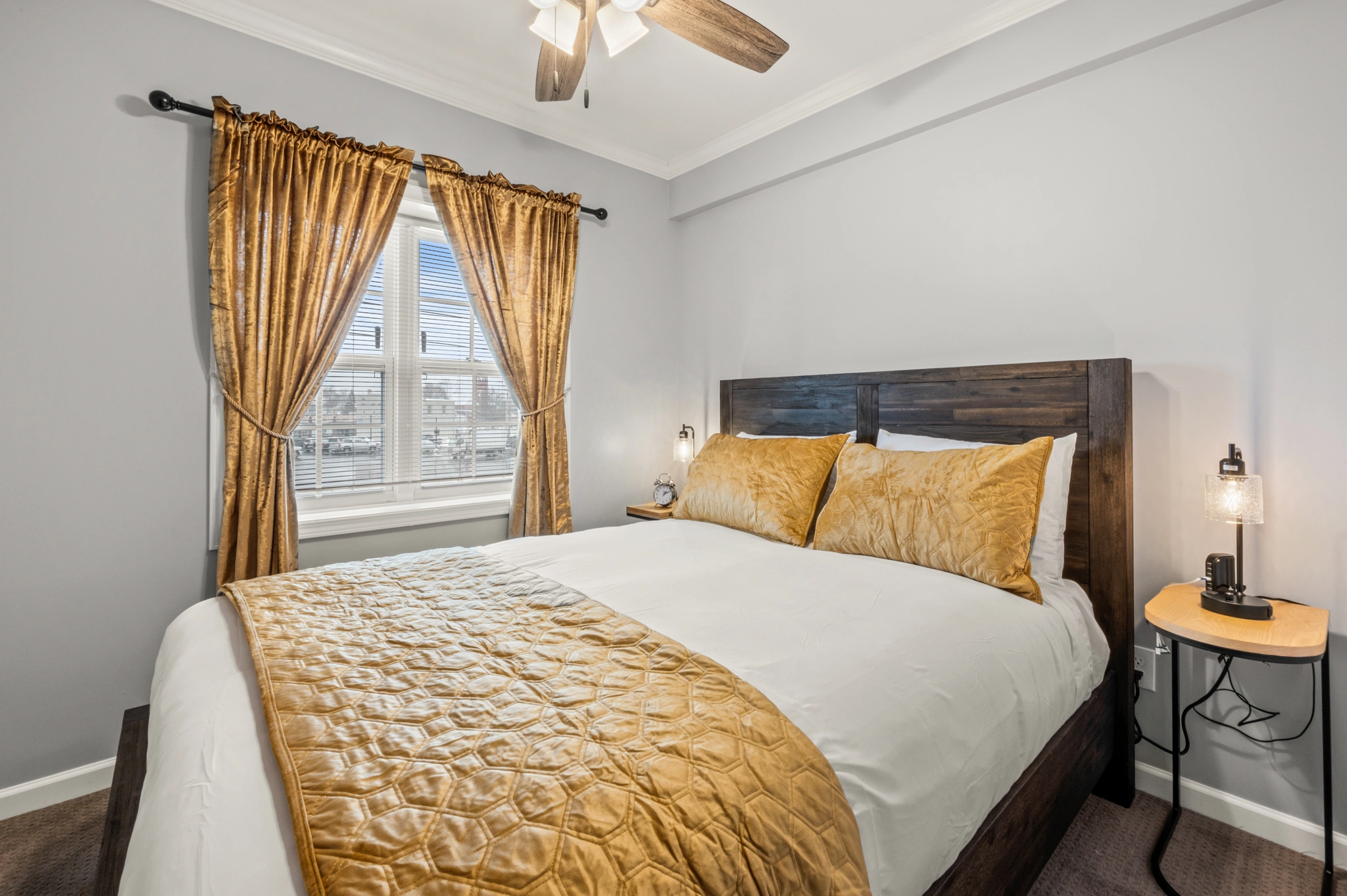 Large Queen size bed with high quality linens