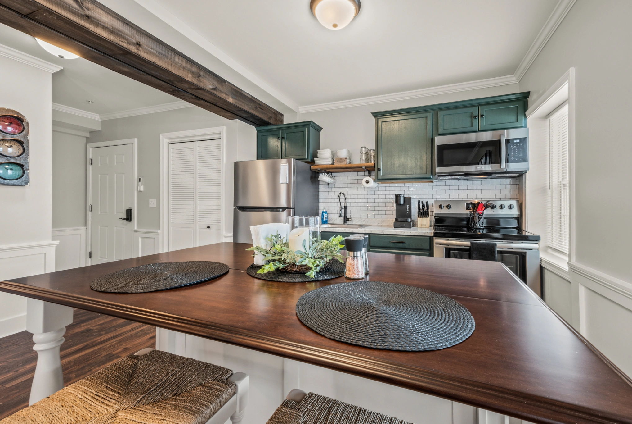 Its central location provides easy access to nearby amenities, restaurants, and public transportation. Please note that occasional train sounds may be heard due to its proximity to the tracks.