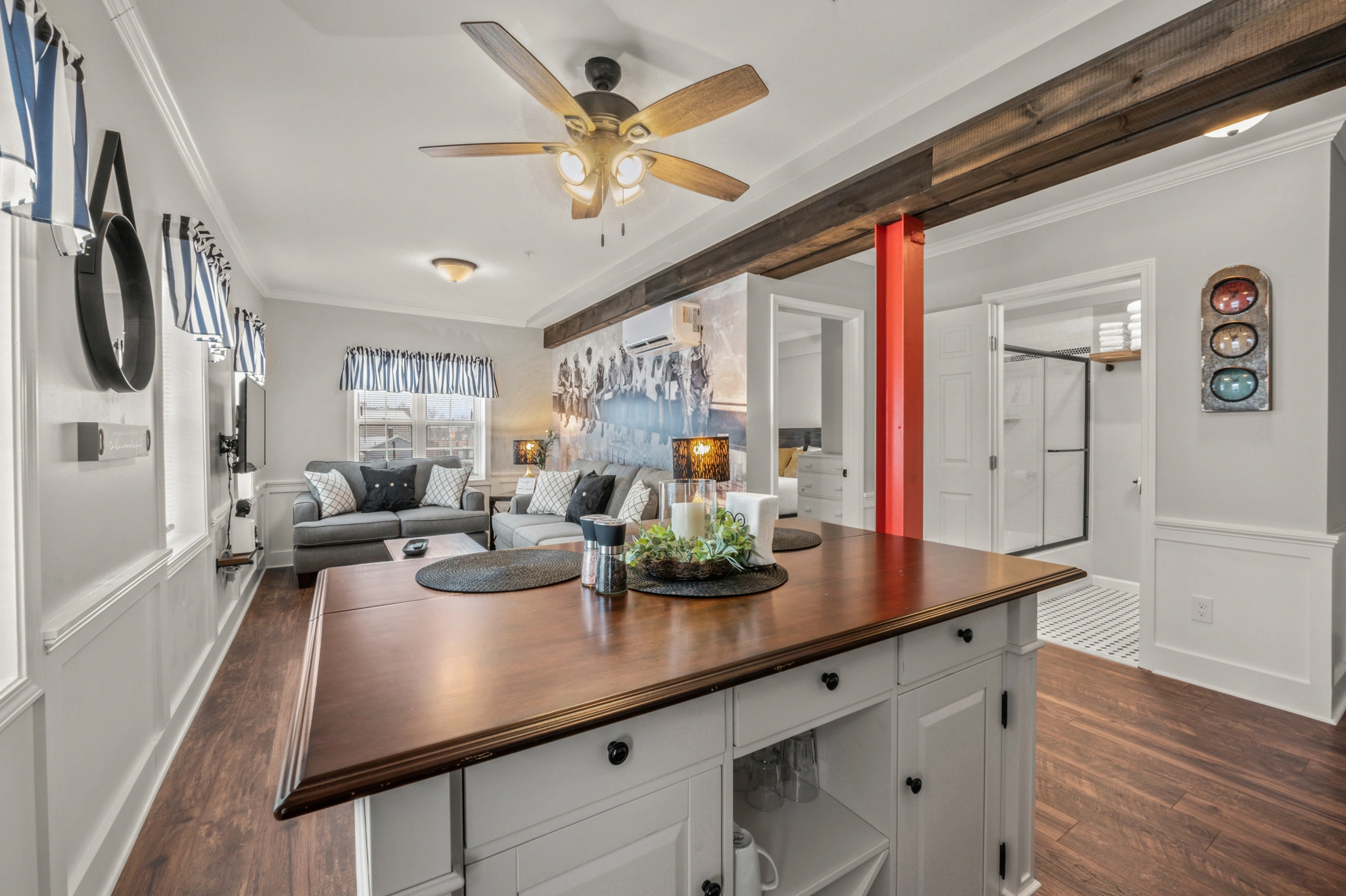 DescriptionA fully furnished 1-bedroom apartment perched on the second floor in the heart of town, just steps away from train tracks. This charming unit offers a cozy living space, a well-appointed kitchen, and a tranquil bedroom.