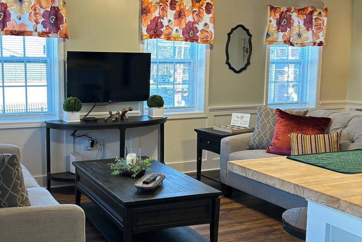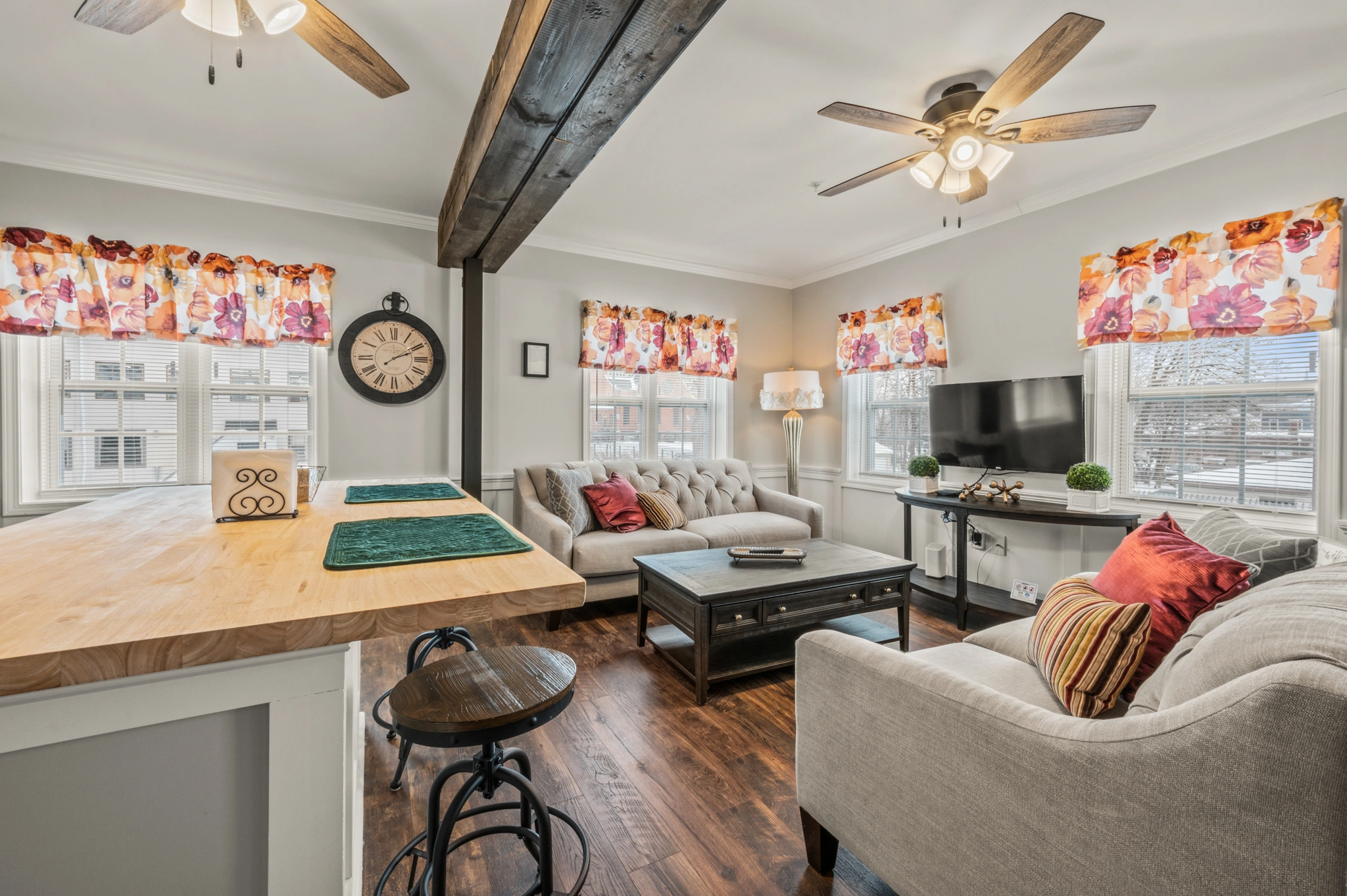 Cozy living room with large flatscreen TV
