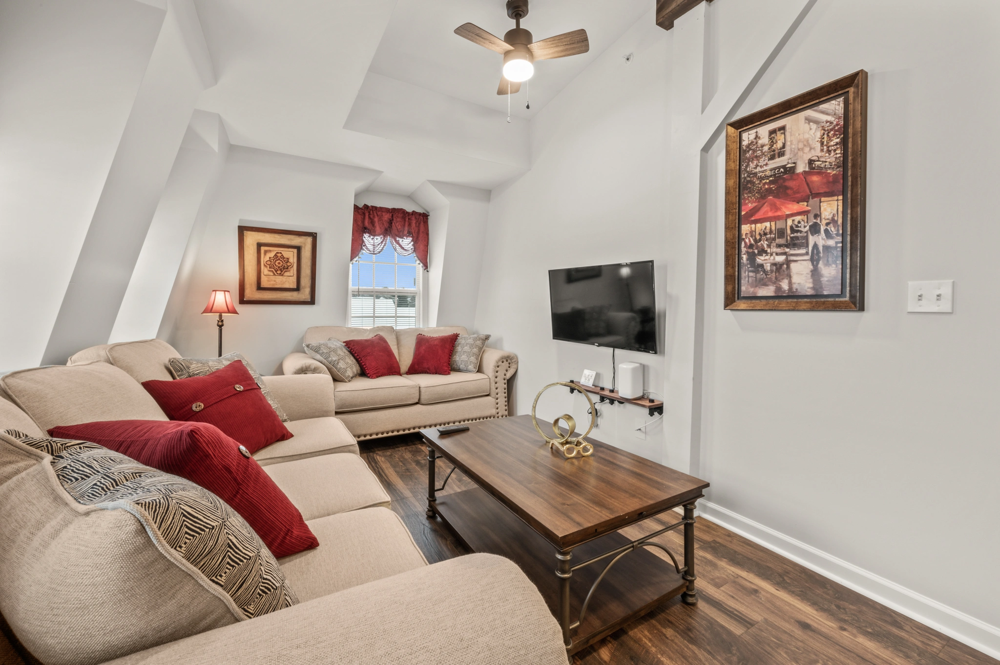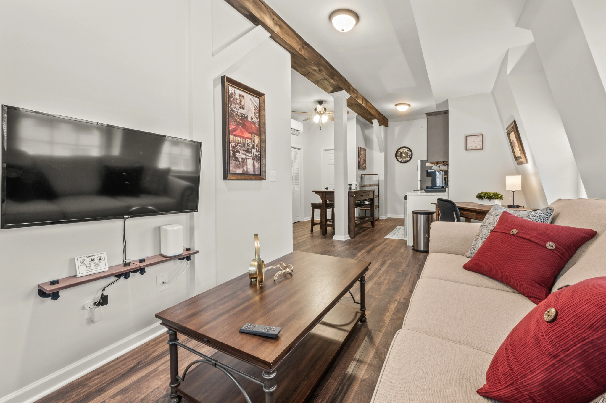 Cozy living room with large flatscreen TV