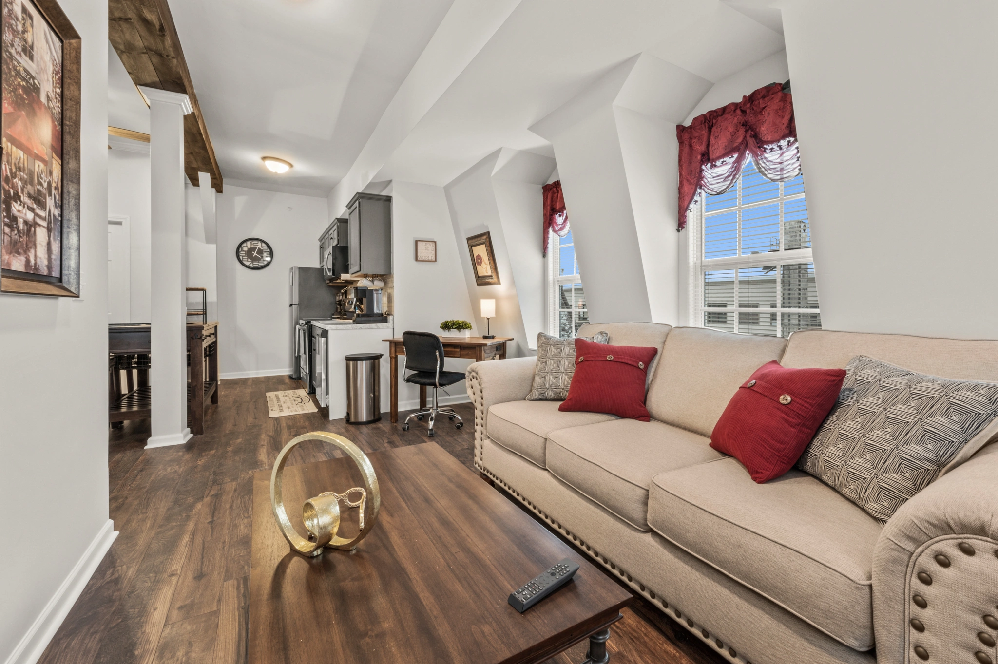 Its prime location provides convenient access to local amenities, dining options, and public transportation. Please note that due to its proximity to the train tracks, occasional train noise may be heard.