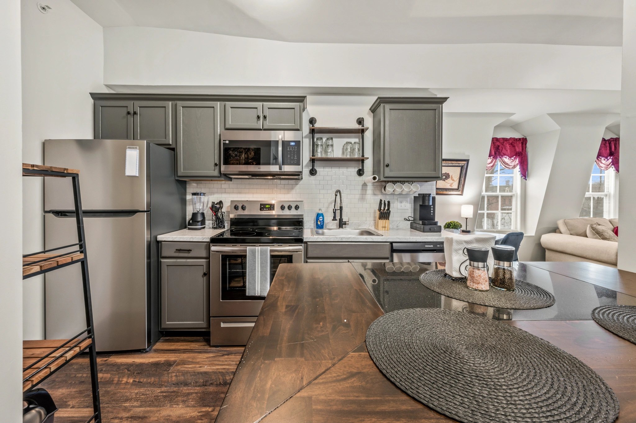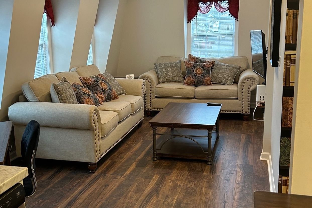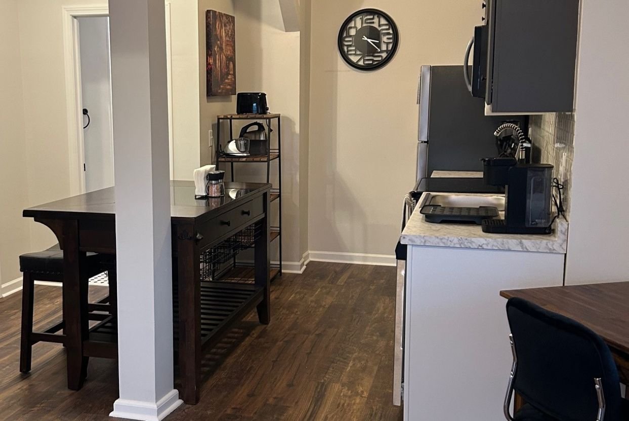 DescriptionA fully furnished 1-bedroom apartment on the 3rd floor, centrally located in town and situated near train tracks. This tastefully decorated unit offers a spacious living area, a well-equipped kitchen, and a cozy bedroom.