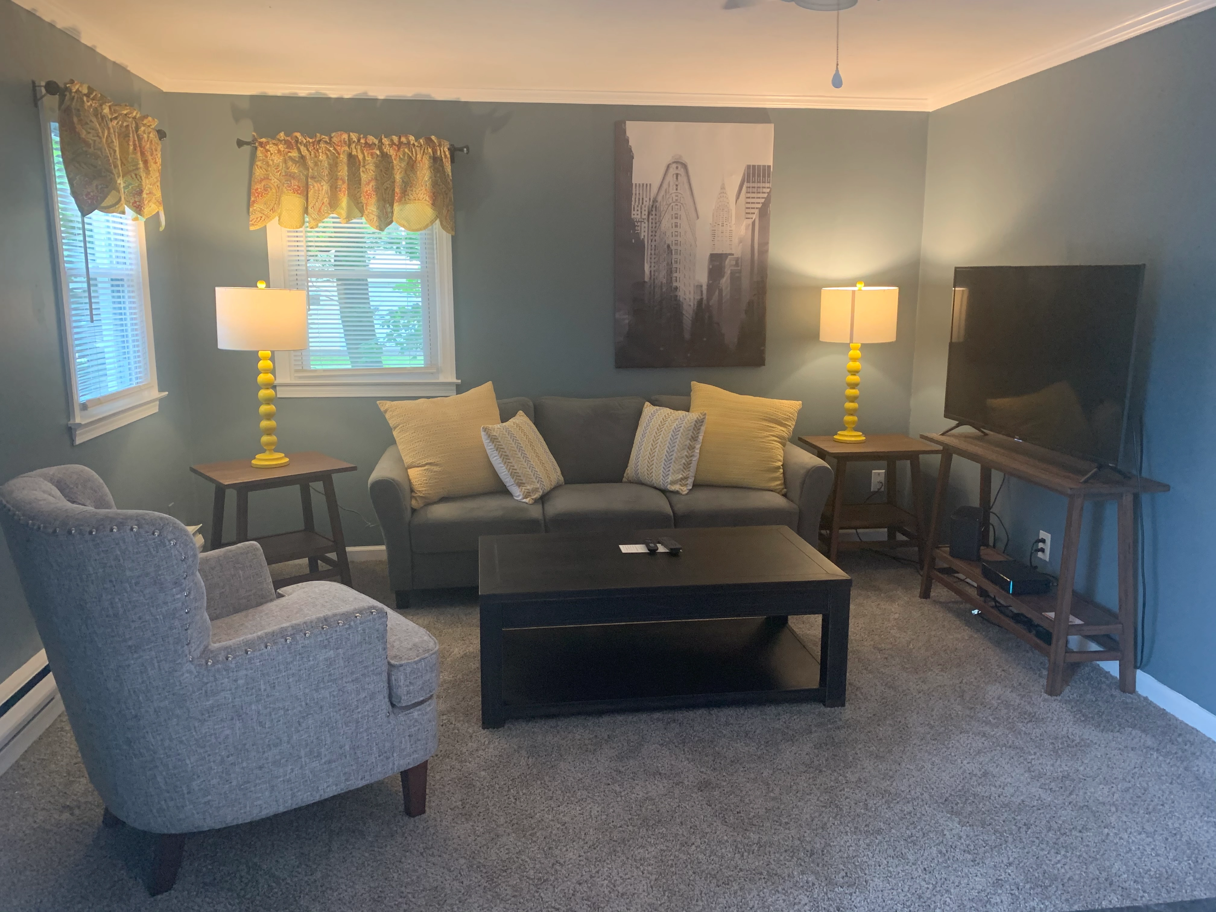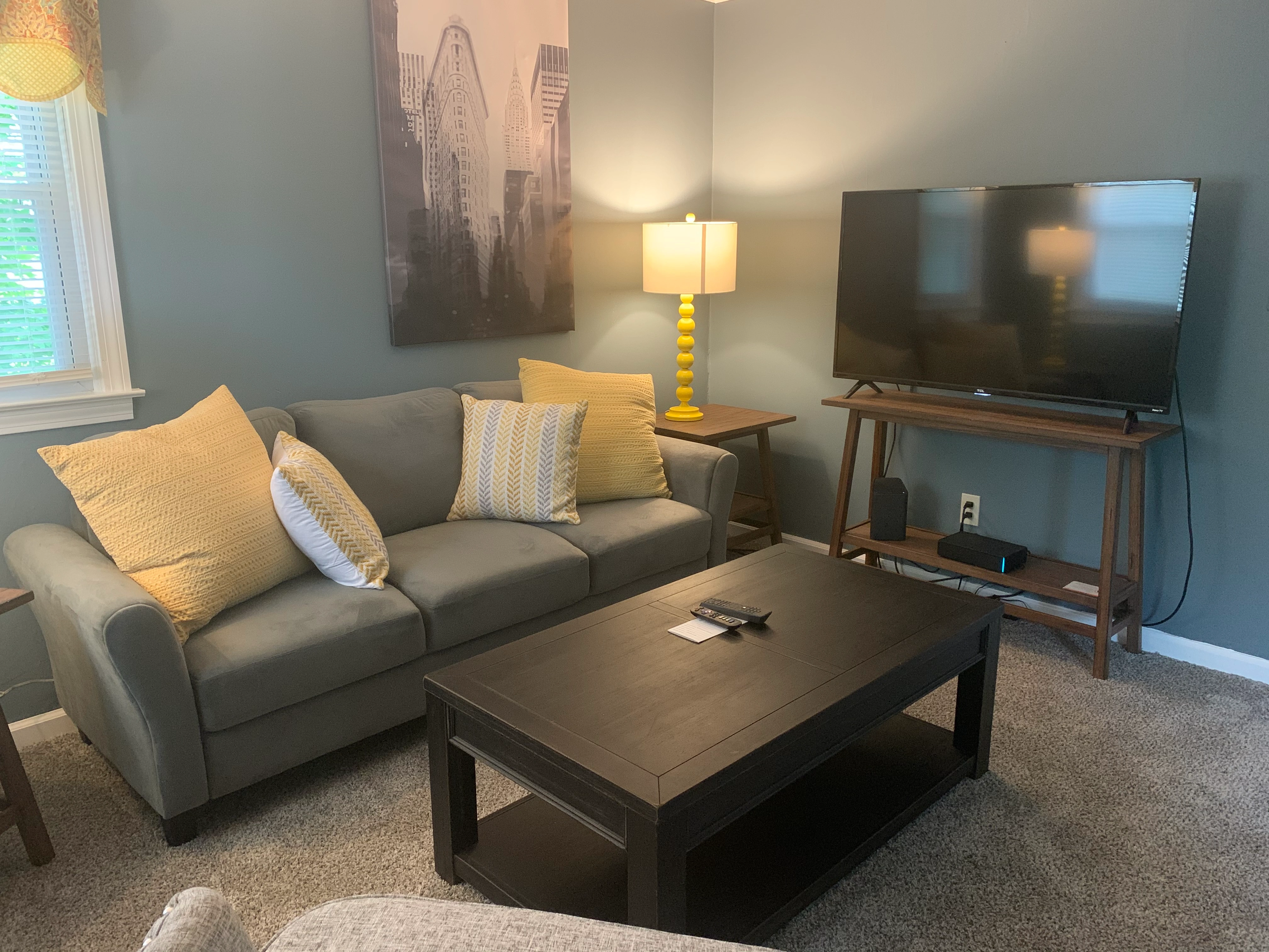 Cozy living room with large flatscreen TV